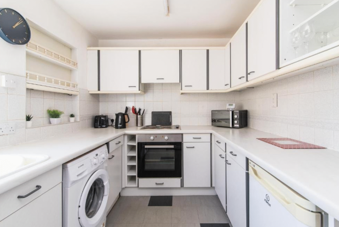 • Laundry & Cleaning Front-loading washing machine integrated into the kitchen cabinetry