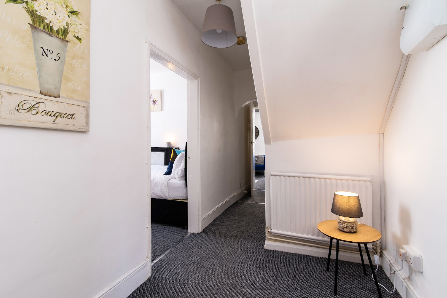 Ideally situated in the historic heart of Castle Donington, this spacious 2nd-floor apartment is designed specifically for the traveler. Combining the comforts of a private home with the convenience of a prime location, you are just a 4-minute drive (1.2 miles) from East Midlands Airport and 5 minutes from Donington Park Circuit.