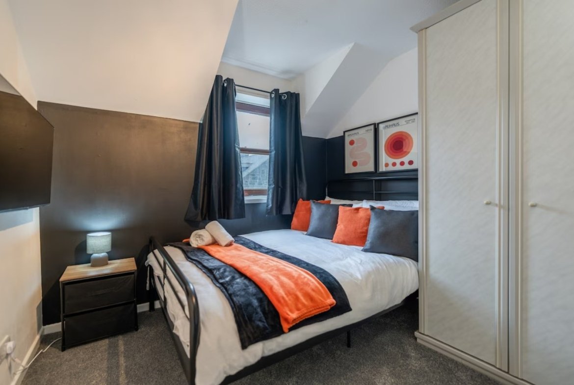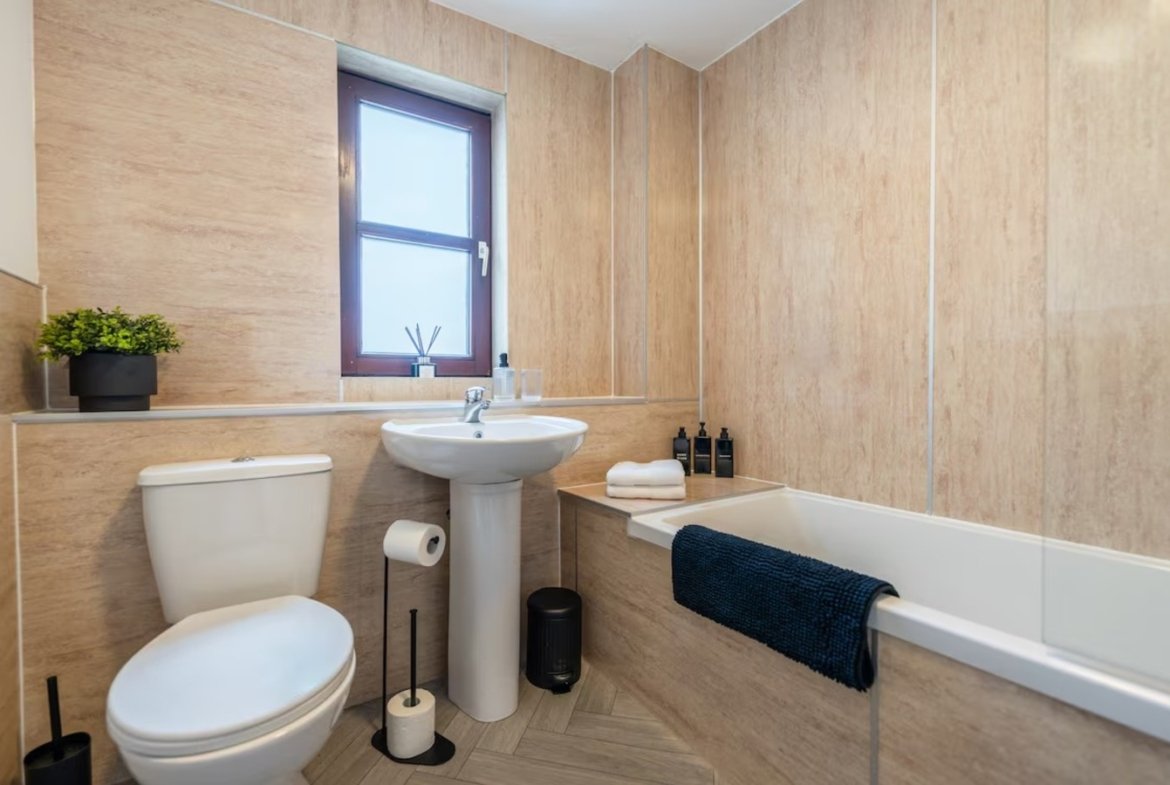 Our apartment features two generously sized bedrooms, each with ample storage space and mirrored wardrobes to ensure you always look your best. Both bedrooms are equipped with double beds, ideal for a restful night’s sleep.