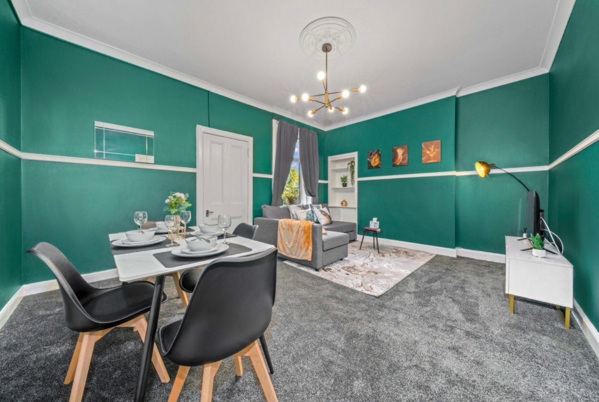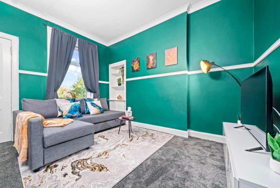 Fantastic traditional 1 bedroom ground floor apartment located in Dunbeth area of Coatbirdge with free on street parking. Located in traditional building the bedroom offers zip link bed which can be set up as super king size bed perfect for couples or 2 single beds ideal for contractors. There is also a wardrobe with full length mirror. The Living room offers comfy sofa bed where extra 2 guests can sleep, smart TV with Netflix and dining table. Kitchen offers fridge & freezer, microwave, oven with hob and washing machine. Traditional bathroom offers shower over bath and complimentary toiletries. All the bed linen and towels are included as well.