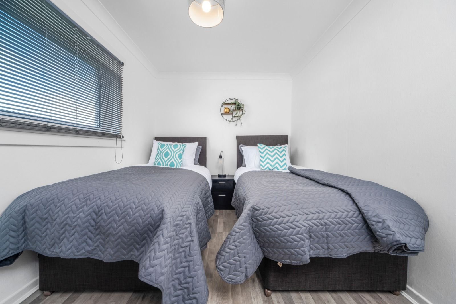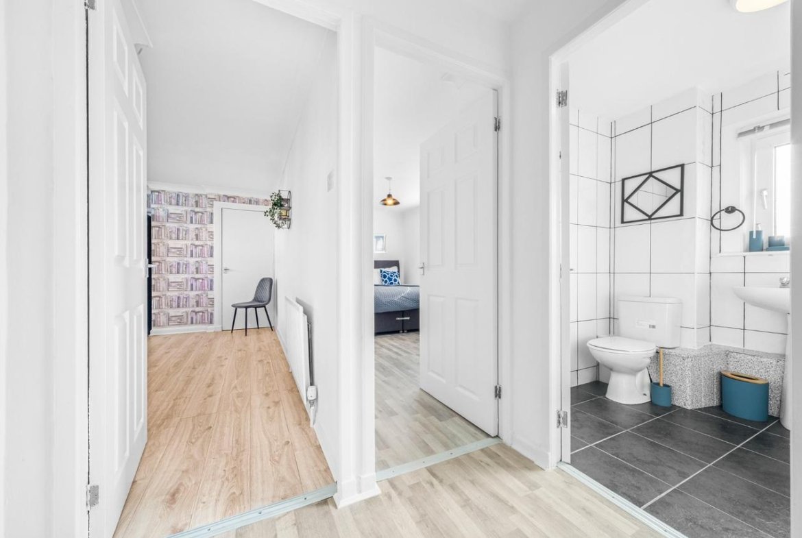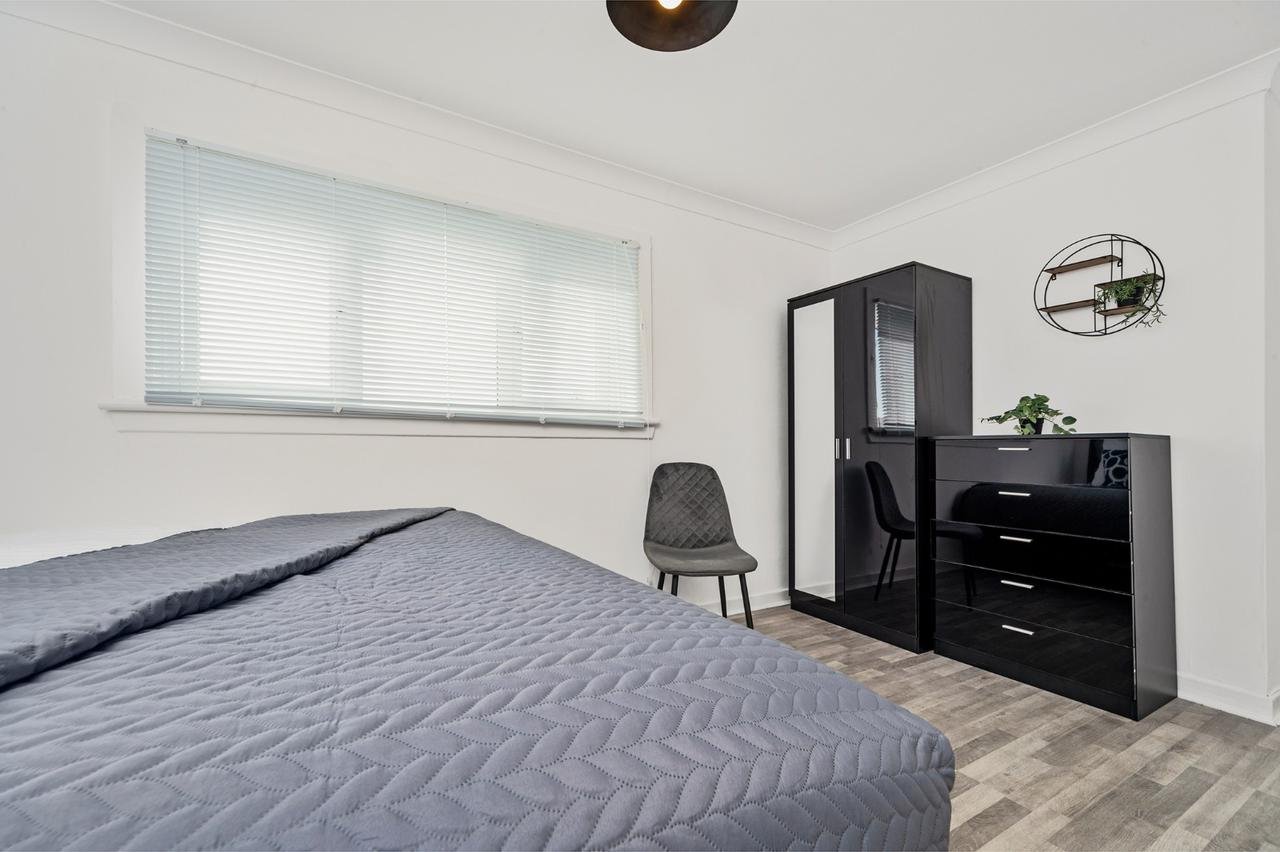 Recently refurbished 3 bedroom first floor apartment located in Shawhead area of Coatbirdge with free on street parking. Situated over 2 levels this property offers 3 bedrooms with zip link beds which can be set up as 3 super king size beds perfect for couples or 6 single beds ideal for contractors. There is also a wardrobe with full length mirror and chest of drawers in each room. The Living room offers comfy sofas, smart TV with Netflix and dining table which can be turned in to pool table.. Kitchen offers fridge & freezer, microwave, oven with hob, washing machine and dishwassher. Spacious bathroom offers shower over bath and complimentary toiletries. All the bed linen and towels are included as well.