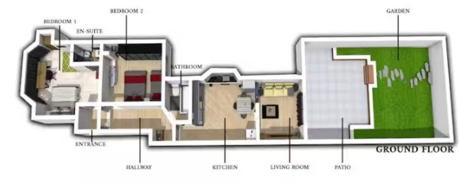 This spacious and comfortable 2-bedroom, 2-bathroom garden flat sleeps up to 4 guests and offers the ideal combination of style, practicality, and city convenience.