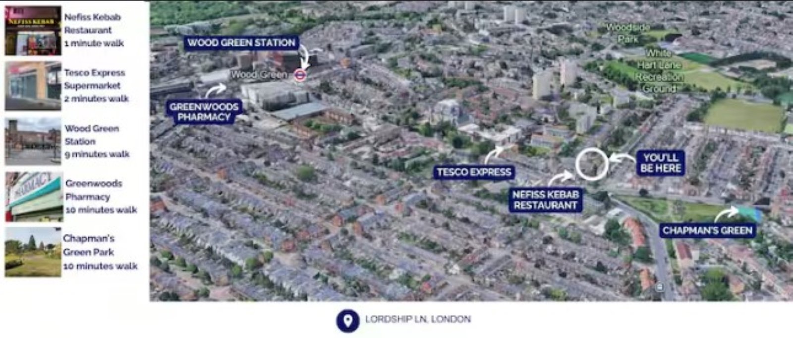 Situated in the heart of Wood Green, you’re steps from shops, cafés, and restaurants, with quick Tube access to Central London and Alexandra Palace (“Ally Pally”). Whether attending events, working locally, or exploring London, everything is within easy reach.