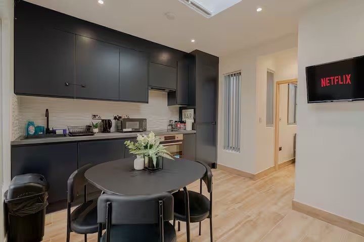 🍴 Open-Plan Dining & Kitchen Area – Whip up a delicious meal in the fully equipped kitchen, then unwind on the sofa bed and binge-watch your favorite Netflix shows on the flat-screen TV. 🍝📺