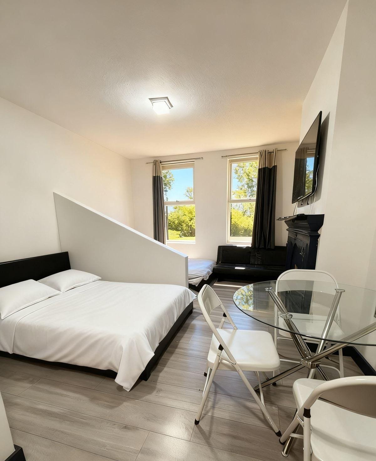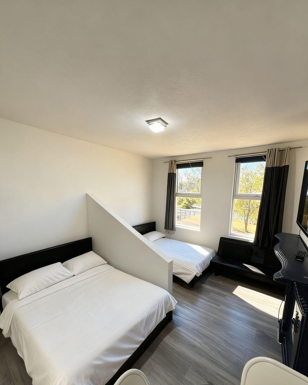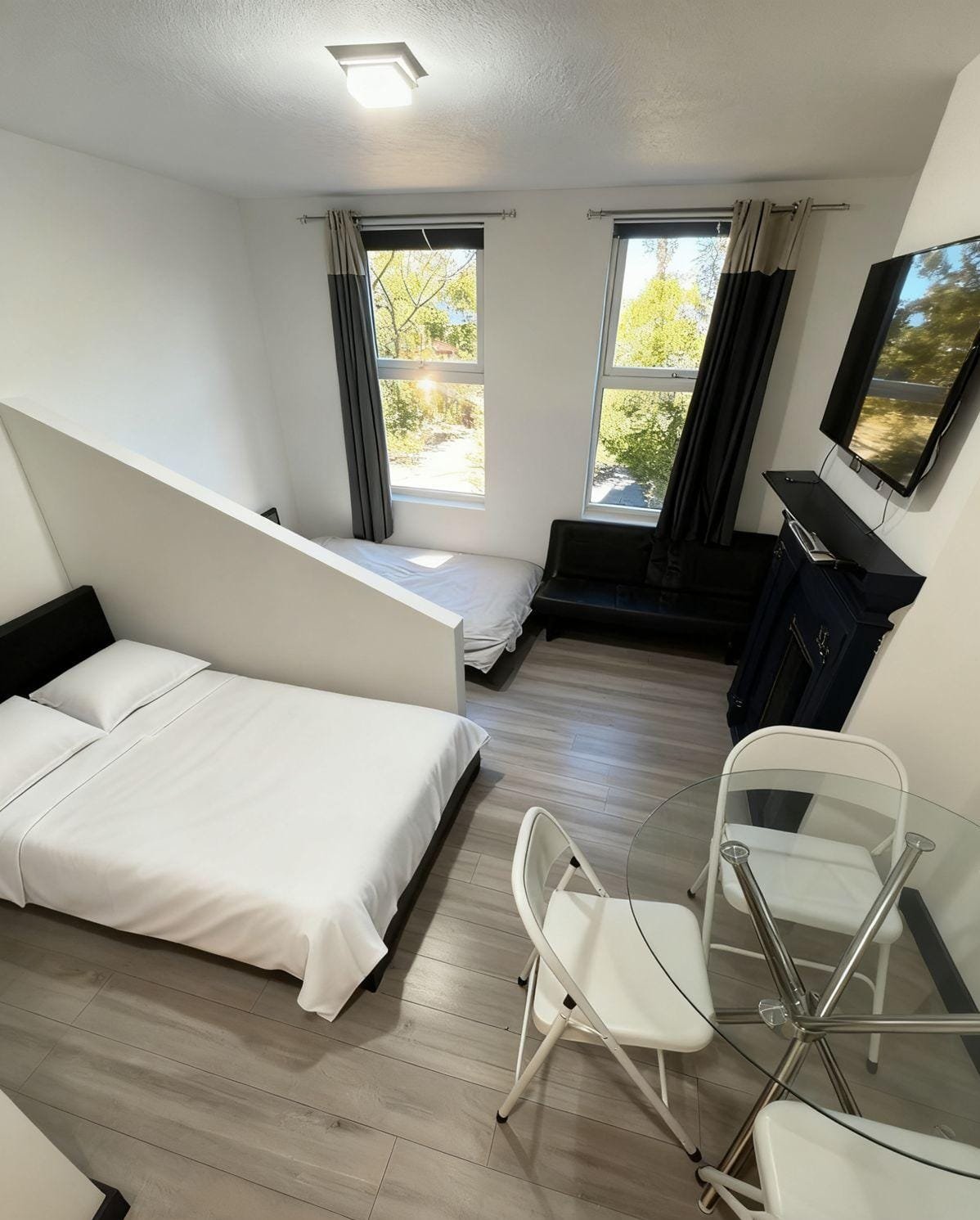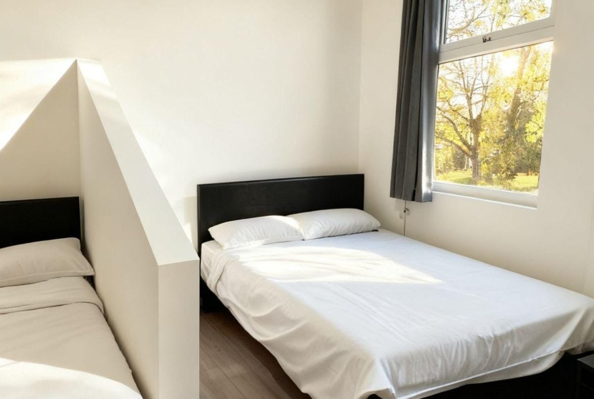 ☑️ Two double beds and one sofa bed, suitable for up to 4 guests.
