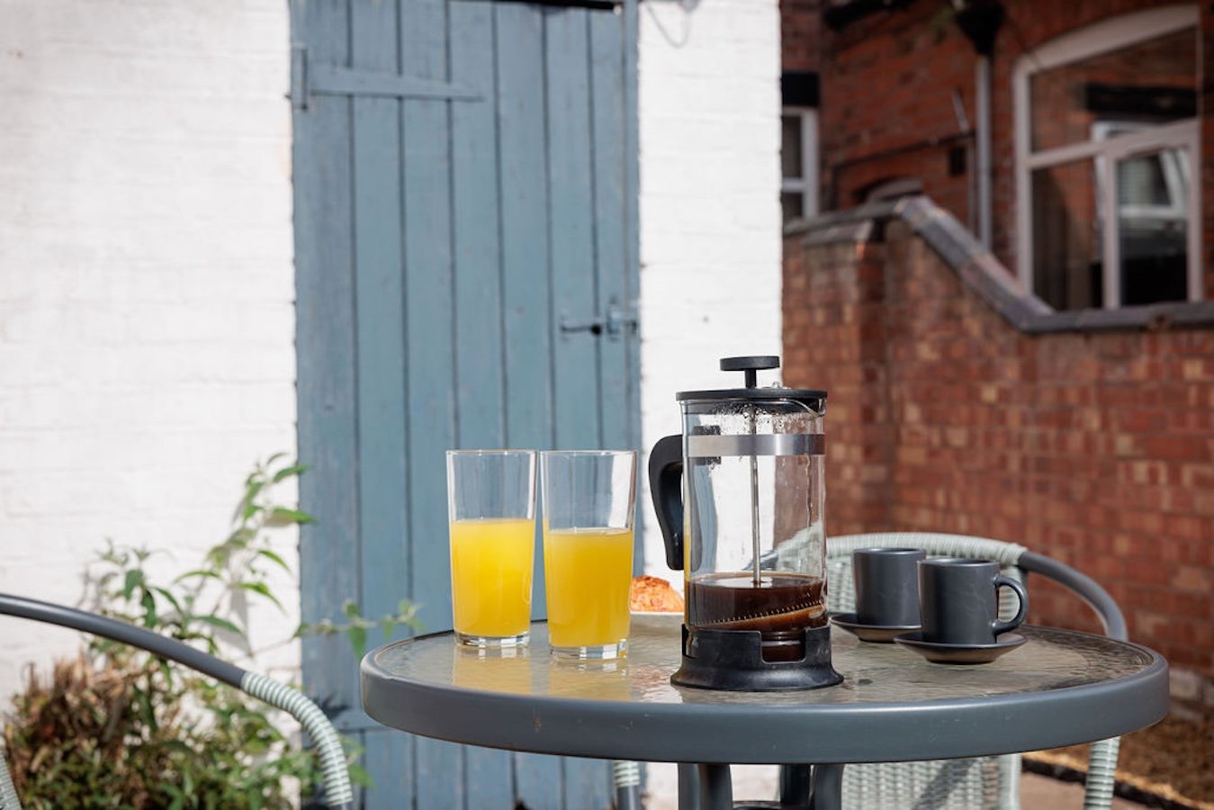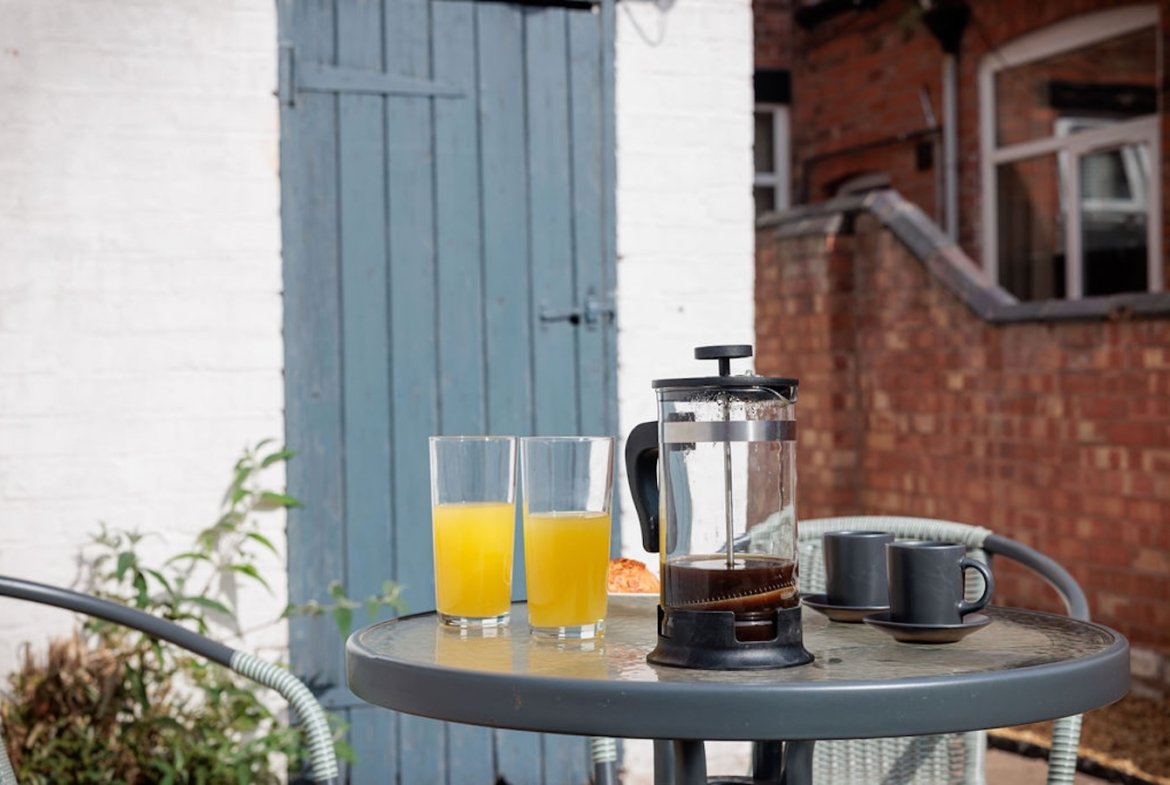 Step outside to the private garden area, with outdoor furniture perfect for enjoying a morning coffee or unwinding in the evening.