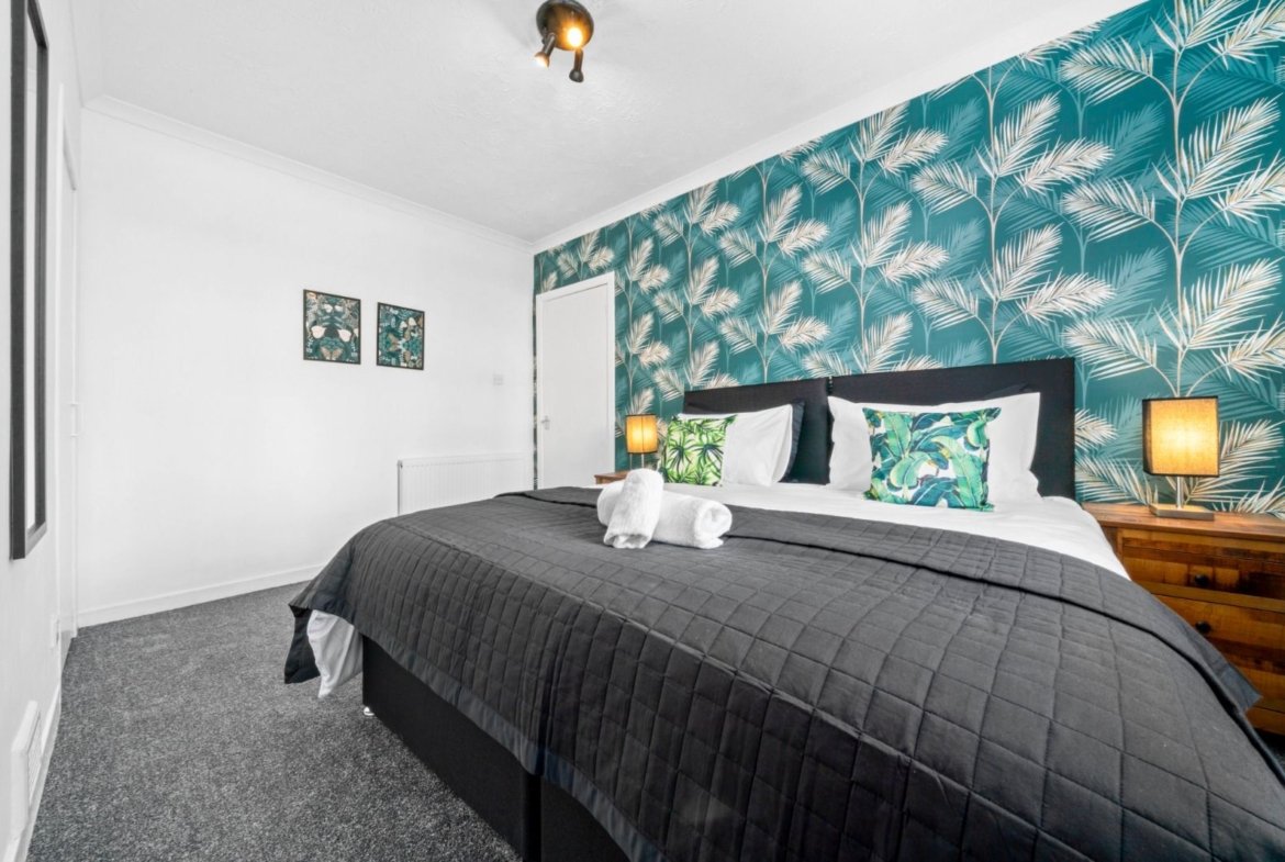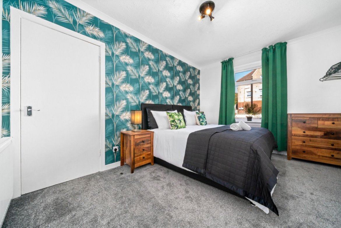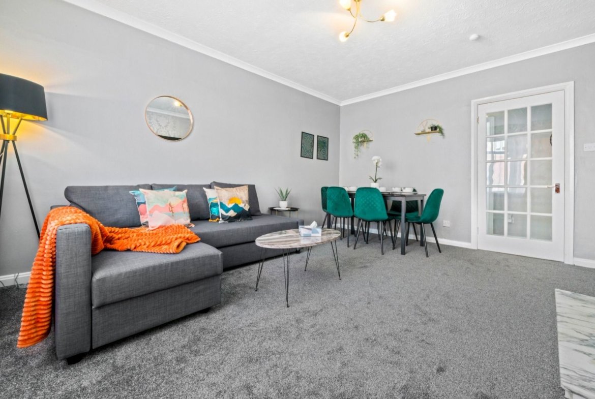 3 bedroom ground floor apartment located in Coatdyke area of Coatbirdge with free private parking. Situated over 1 level this property offers 3 bedrooms with zip link beds which can be set up as 3 super king size beds perfect for couples or 6 single beds ideal for contractors. There is also a wardrobe with full length mirror and chest of drawers in each room. The Living room offers comfy sofas, smart TV with Netflix and dining table. Kitchen offers fridge & freezer, microwave, oven with hob and washing machine. Spacious bathroom offers shower over bath and complimentary toiletries. All the bed linen and towels are included as well.
