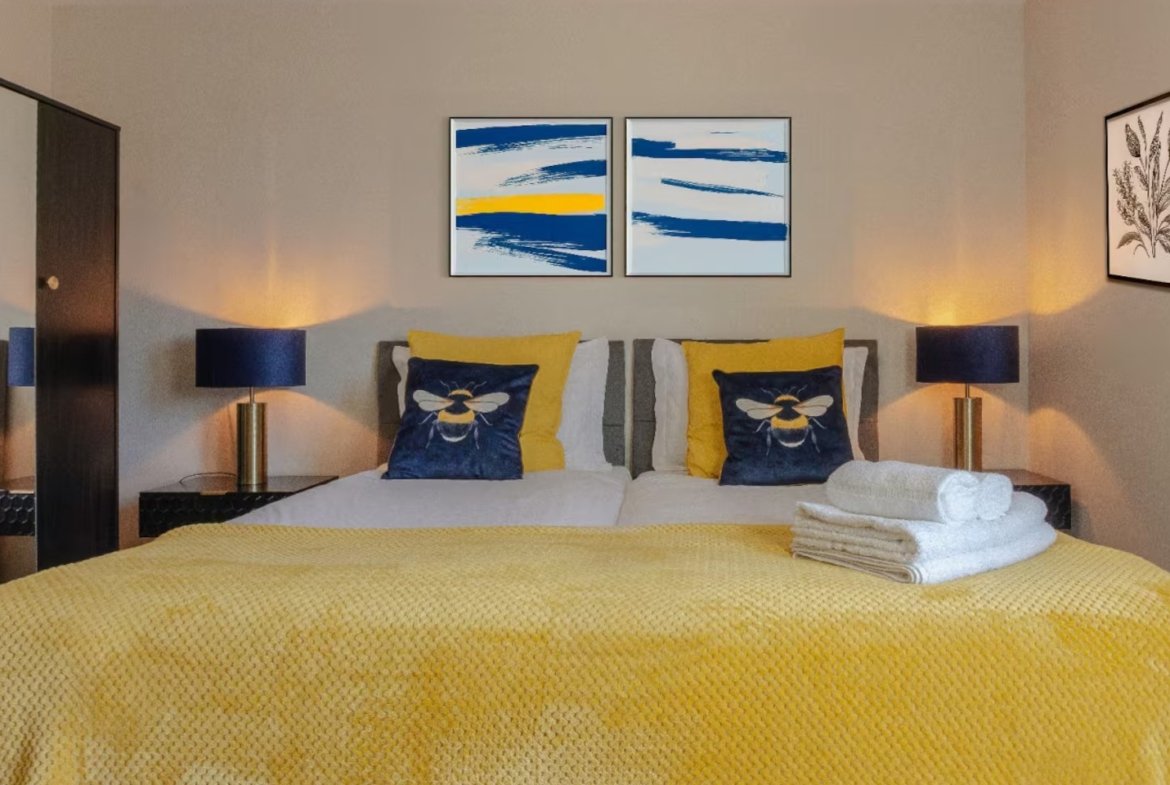 Enjoy comfort and convenience in this stylish 2-bedroom, 1-bath flat that comfortably sleeps up to four guests. The main bedroom can be arranged as either 1 King Bed or 2 Single Beds, the second bedroom offers a cozy single space without a window—perfect for kids or light-sensitive sleepers—and there’s also a sofa bed in the living area.