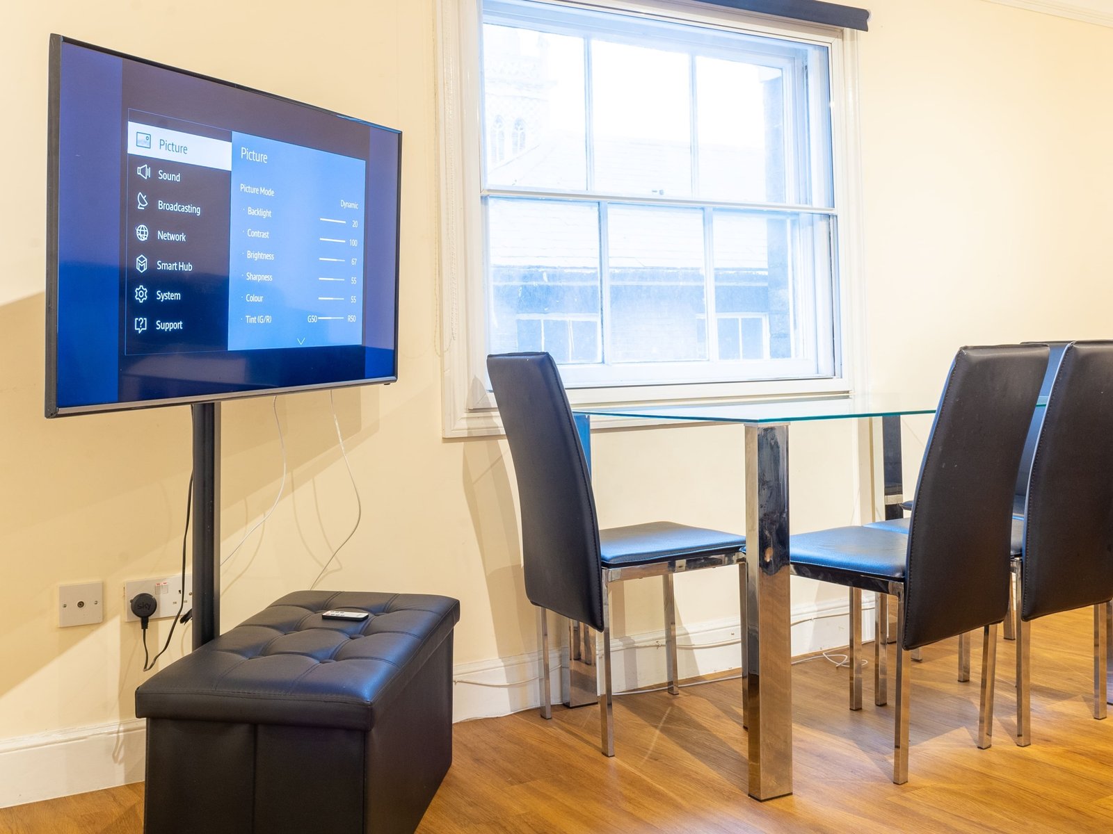 ➡︎ Relax in the living area with a large TV or dine comfortably at the dining table.
