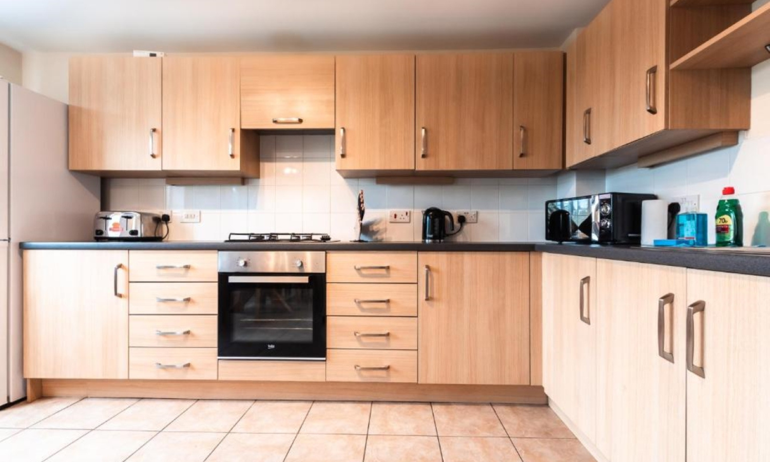 Well‑equipped kitchen (fridge, hob, oven)