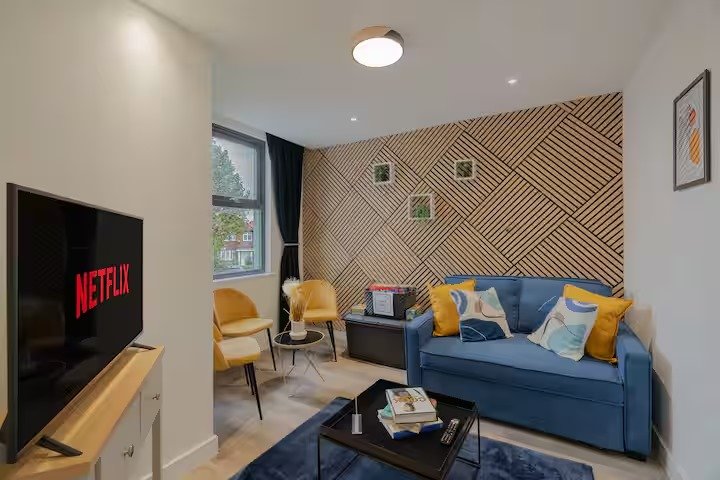 Situated in a peaceful residential area, this apartment provides a tranquil environment while being well-connected to Central London. Enfield offers a variety of local shops, cafes, and parks, ensuring a pleasant stay for all guests.