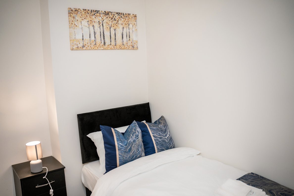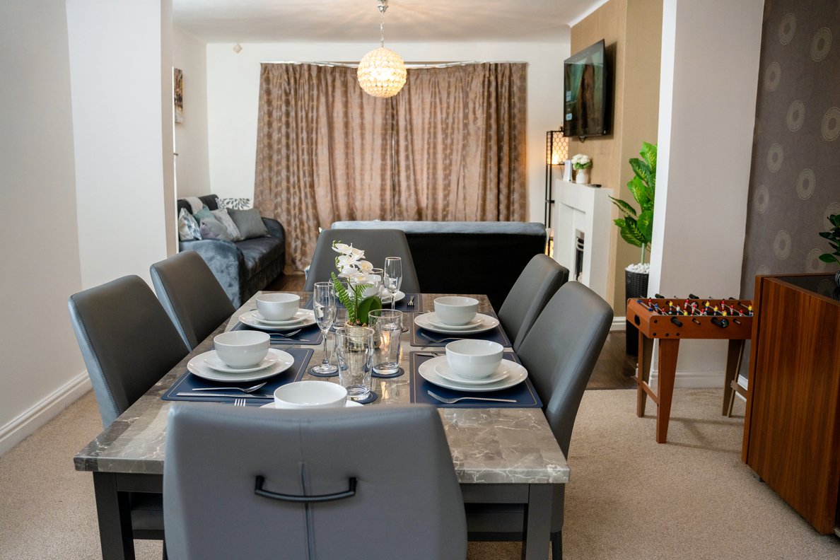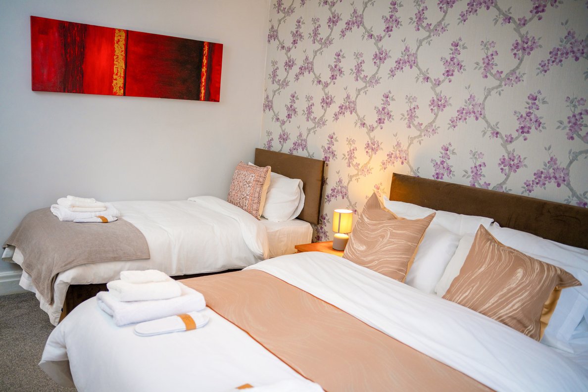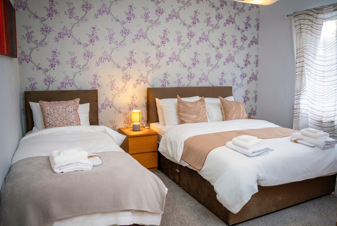 Bright & spacious 4-bedroom home perfect for families or groups! Enjoy a modern living area, fully equipped kitchen, and cozy dining space. Comfy bedrooms and convenient bathrooms make every stay relaxing. With shops, transport links, and parks just steps away, everything you need is close by. Stylish, comfortable, and perfectly located for exploring the city!