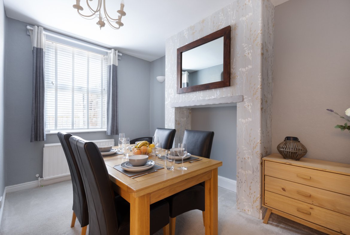 ** Dining area** with seating up for 6 people & a highchair for our younger guests.