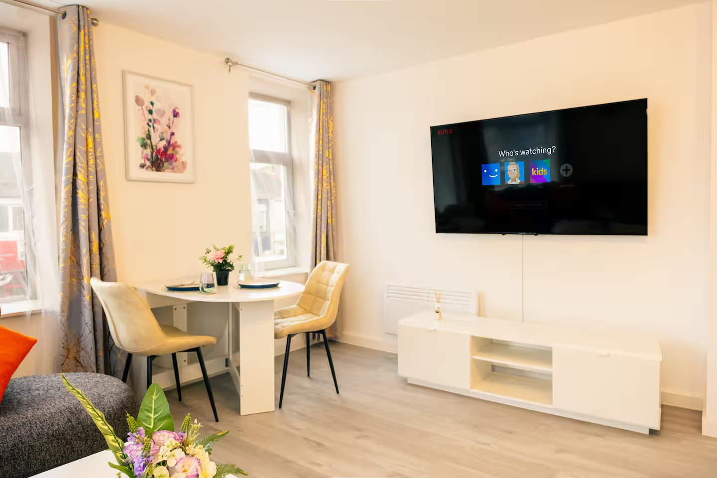➞ No Parties or Loud Music – This is a peaceful residential area. Out of respect for neighbours, please keep noise low. Disturbances may incur a £250 fee.