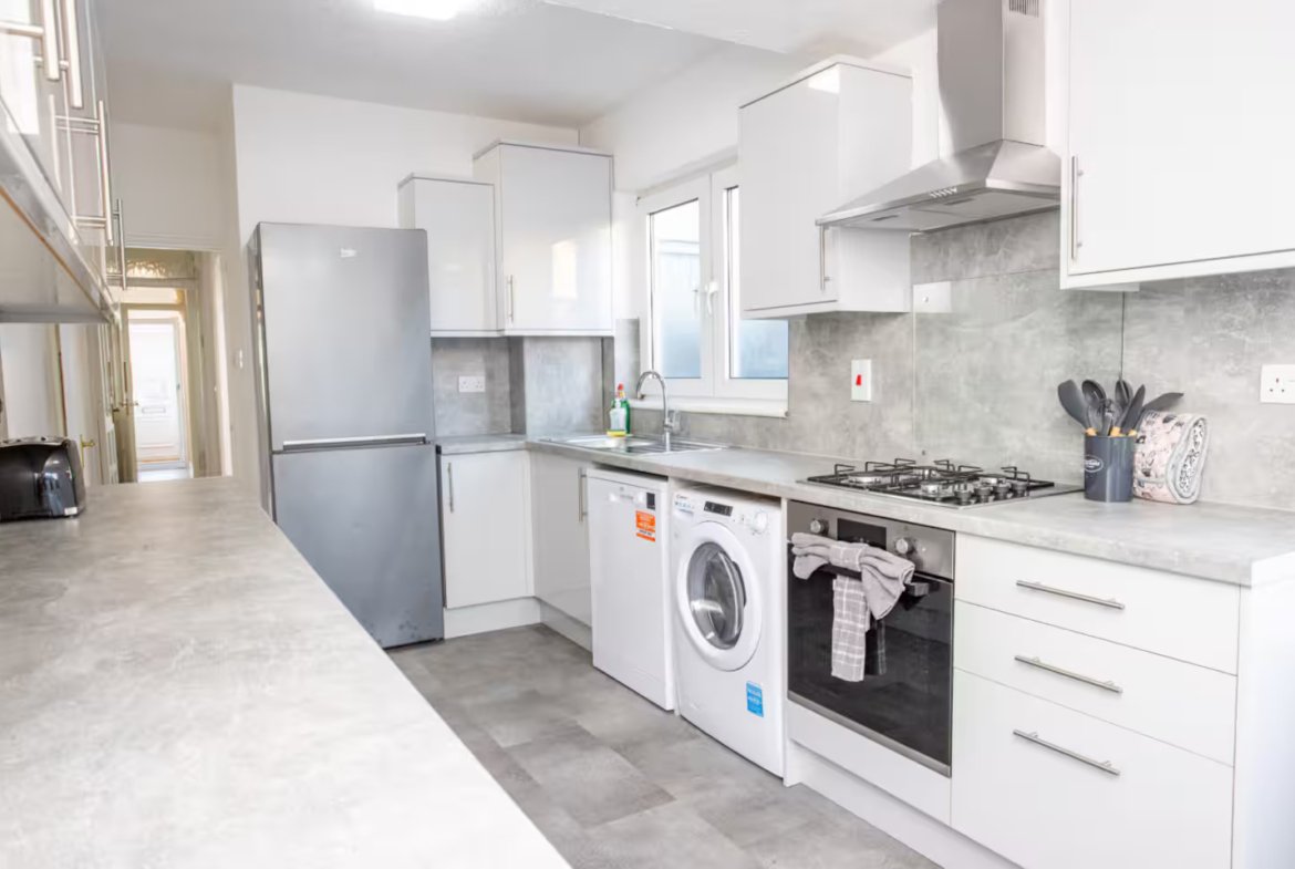 🍽️ All the essentials: Oven, dishwasher, toaster, electric kettle, microwave, and a full-size refrigerator.