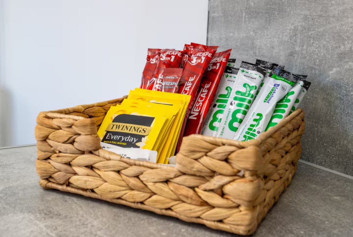 ☕️ Complimentary tea, coffee, and sugar to start your day right!