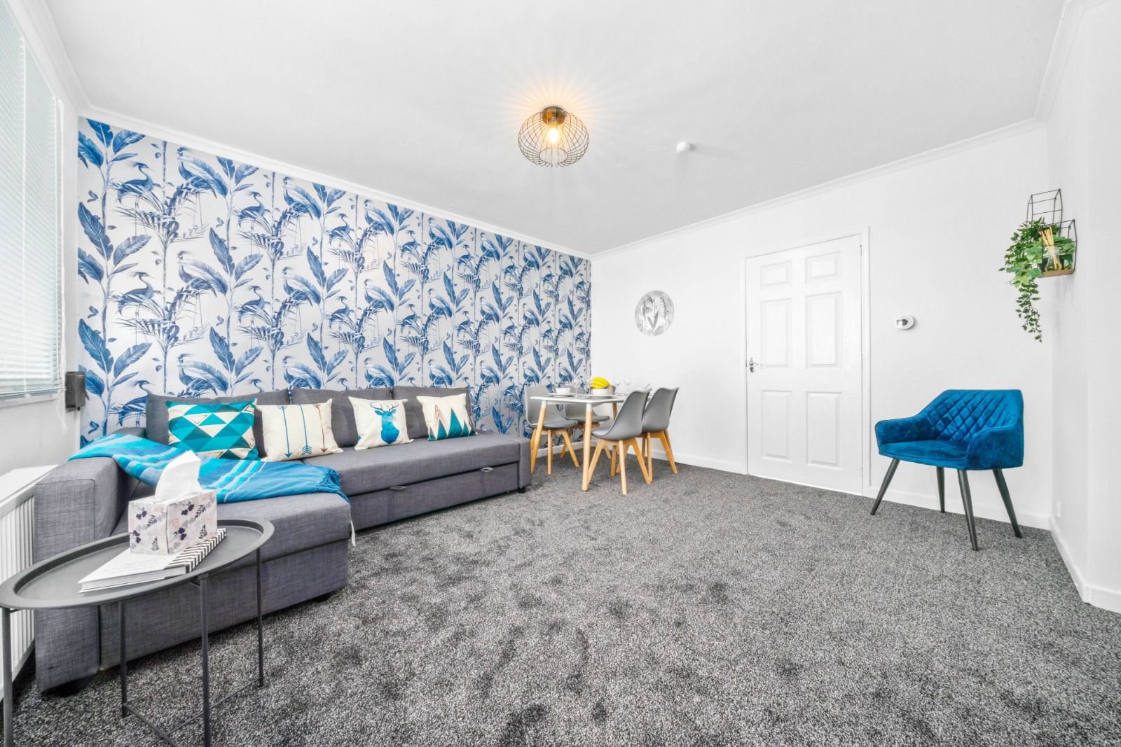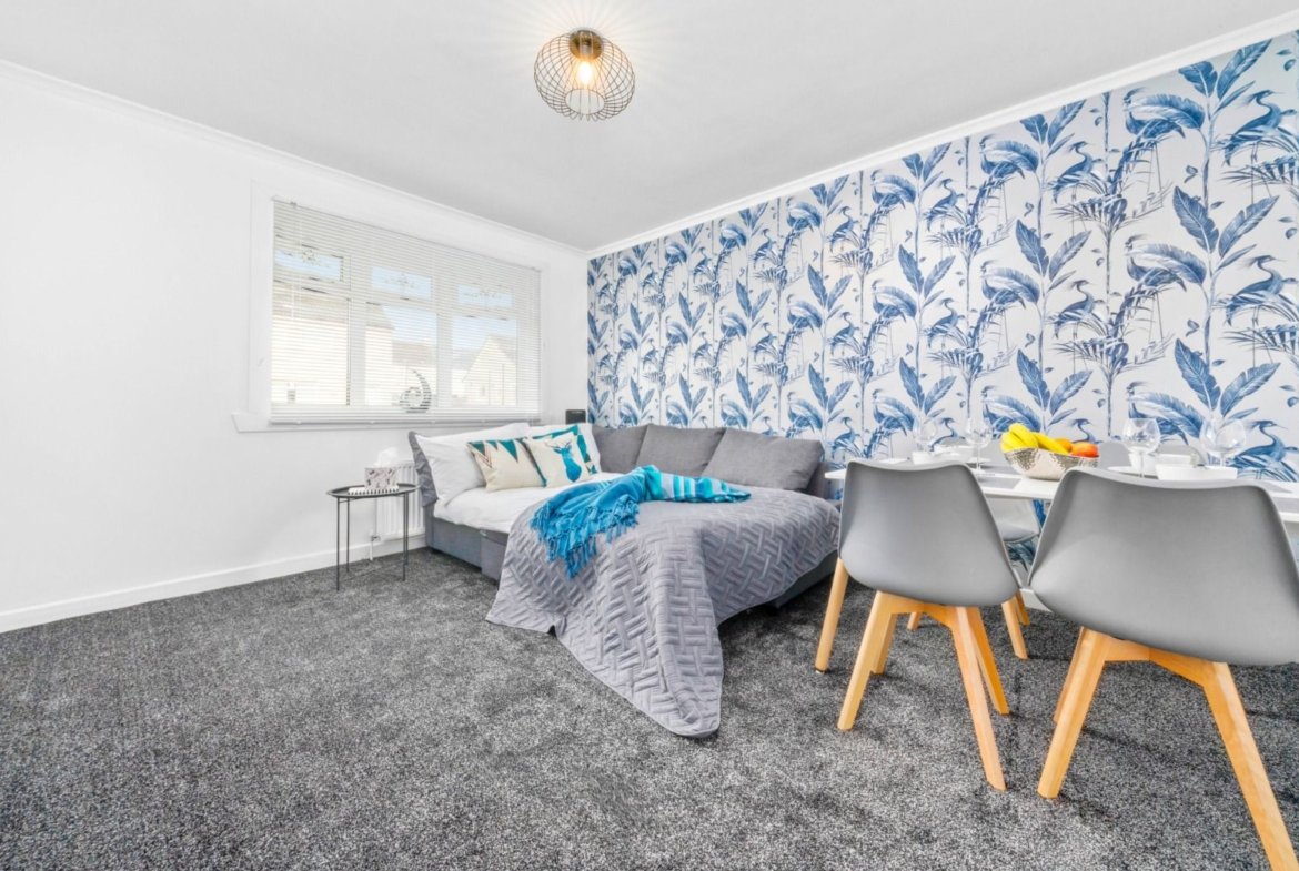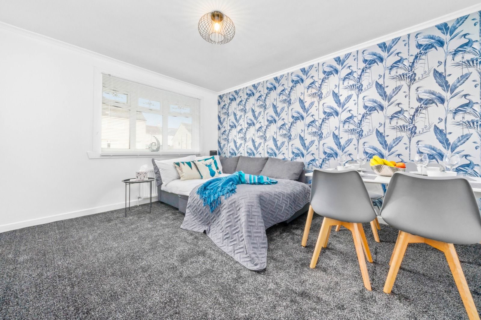 Beautiful and modern 2 bedroom house located in Bellshill with free private parking. Two spacious bedrooms offer zip link super king bed in 2 bedrooms and ideal for contractors and families with children. The Living room offers comfy sofa bed where extra 2 guests can sleep, smart TV with Netflix and dining table. Spacious kitchen offers fridge freezer, microwave, oven with hob and washing machine. Modern bathroom offers shower over bath and complimentary toiletries All the bed linen and towels are included as well.