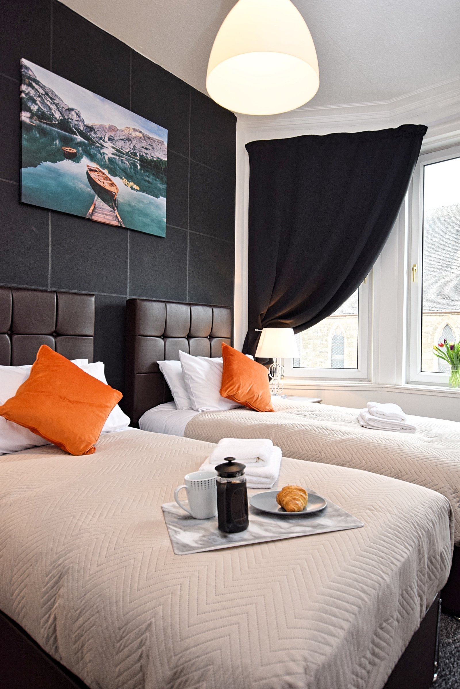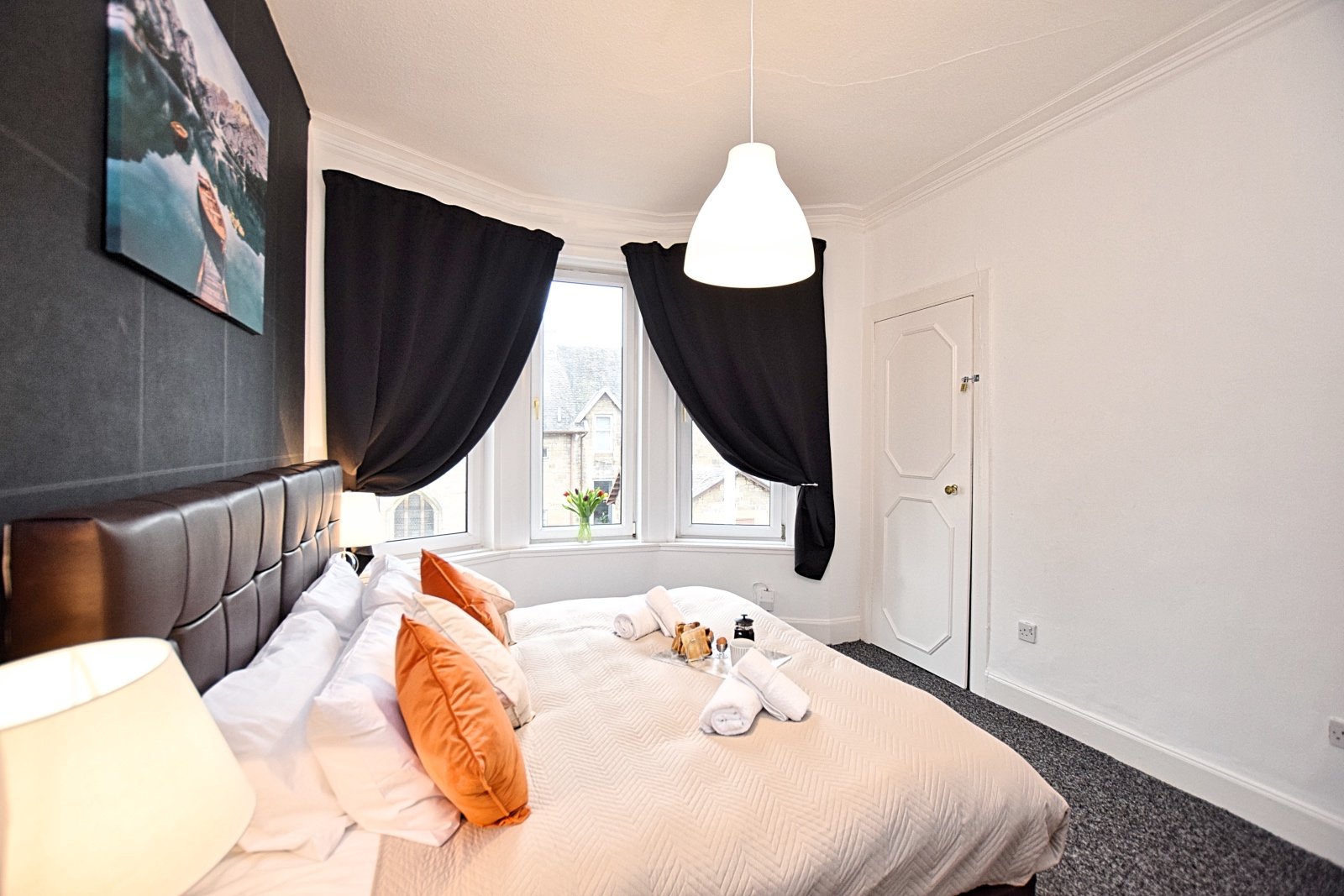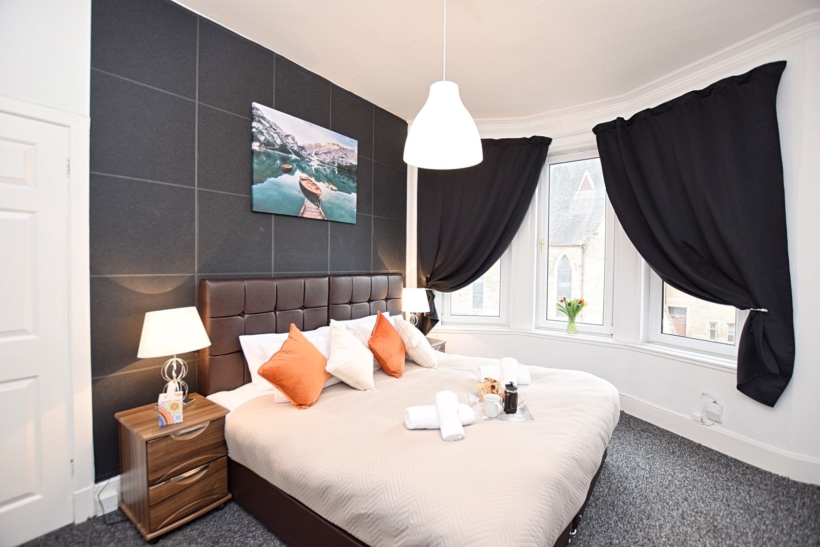 Fantastic traditional 1 bedroom first floor apartment located in Whifflet area of Coatbirdge with free on street parking. Located in traditional building with access at the back, the bedroom offers zip link bed which can be set up as super king size bed perfect for couples or 2 single beds ideal for contractors. There is also a wardrobe with full length mirror. The Living room offers comfy sofa bed where extra 2 guests can sleep, smart TV with Netflix and dining table. Kitchen offers fridge & freezer, microwave, oven with hob and washing machine. Spacious bathroom offers shower over bath and complimentary toiletries. All the bed linen and towels are included as well.